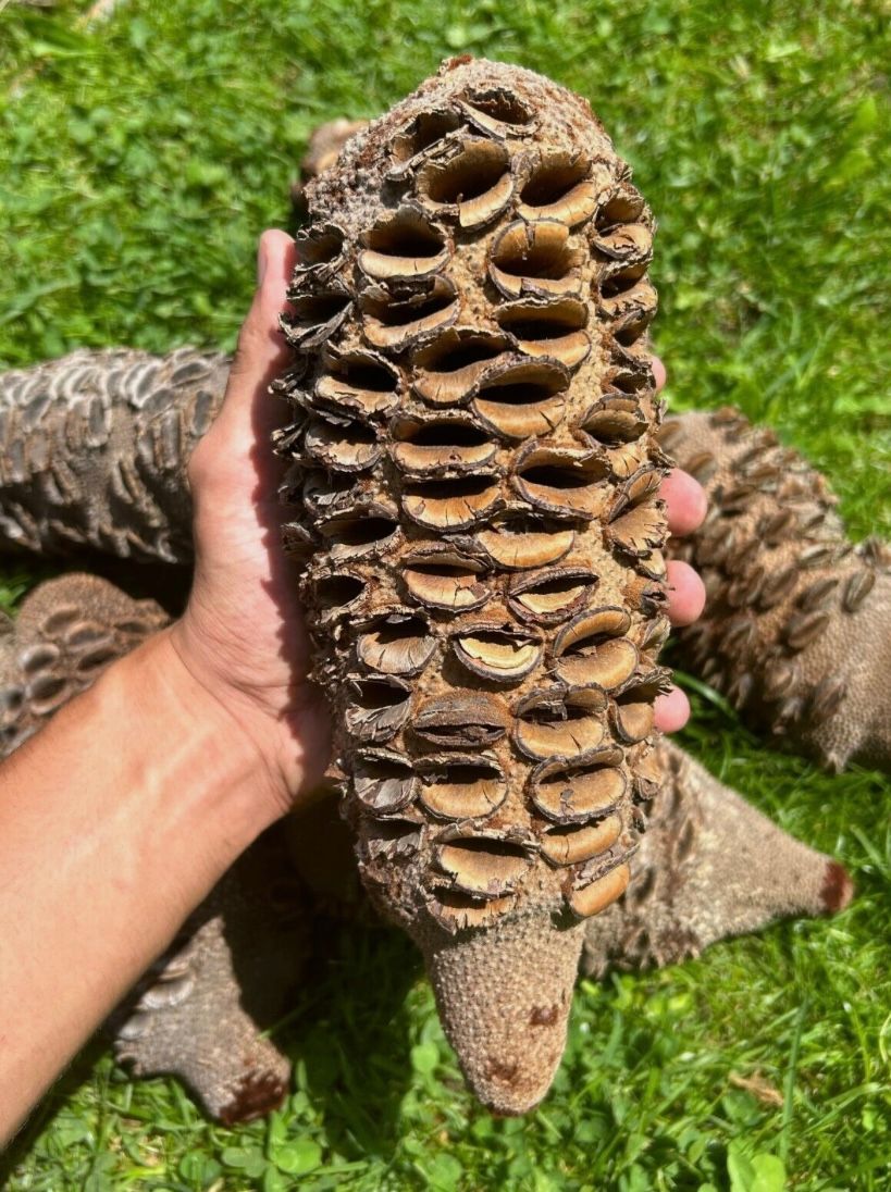 Banksia Grandis kommt in Süd-West Australien vor und ist die Art der Banksien, welche die größten Zapfen in einer Familie von etwa 80 Unterarten ausbildet. Diese Art wird auch als Bull Banksia, Giant Banksia oder Mangite bezeichnet. Banksia Grandis wächst als Baum mit bis zu 15 Metern Höhe. Das spannende an den Banksien ist, dass sich die Samenstände erst durch die Hitze eines Buschfeuers öffnen und die Samen freigeben. Diese wiederum werden dann durch den Wind verbreitet. Die Banksien sind australische Wildblumen und als solche bilden sie sehr hübsche Blüten in den Sommermonaten aus.