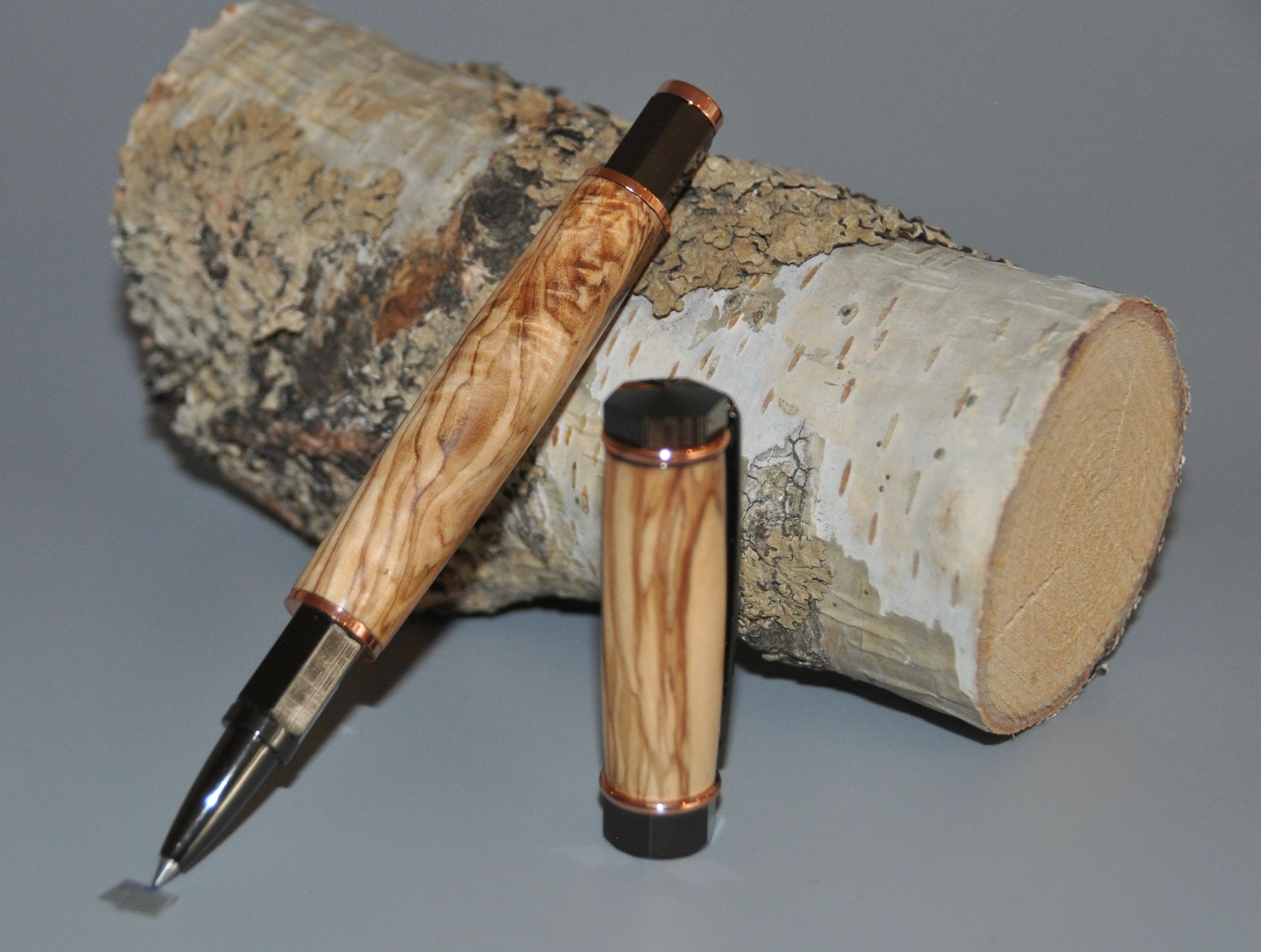 Sehr hochwertiger schwerer Rollerballstift mit magnetischer Kappe aus gewachstem Olivenholz.