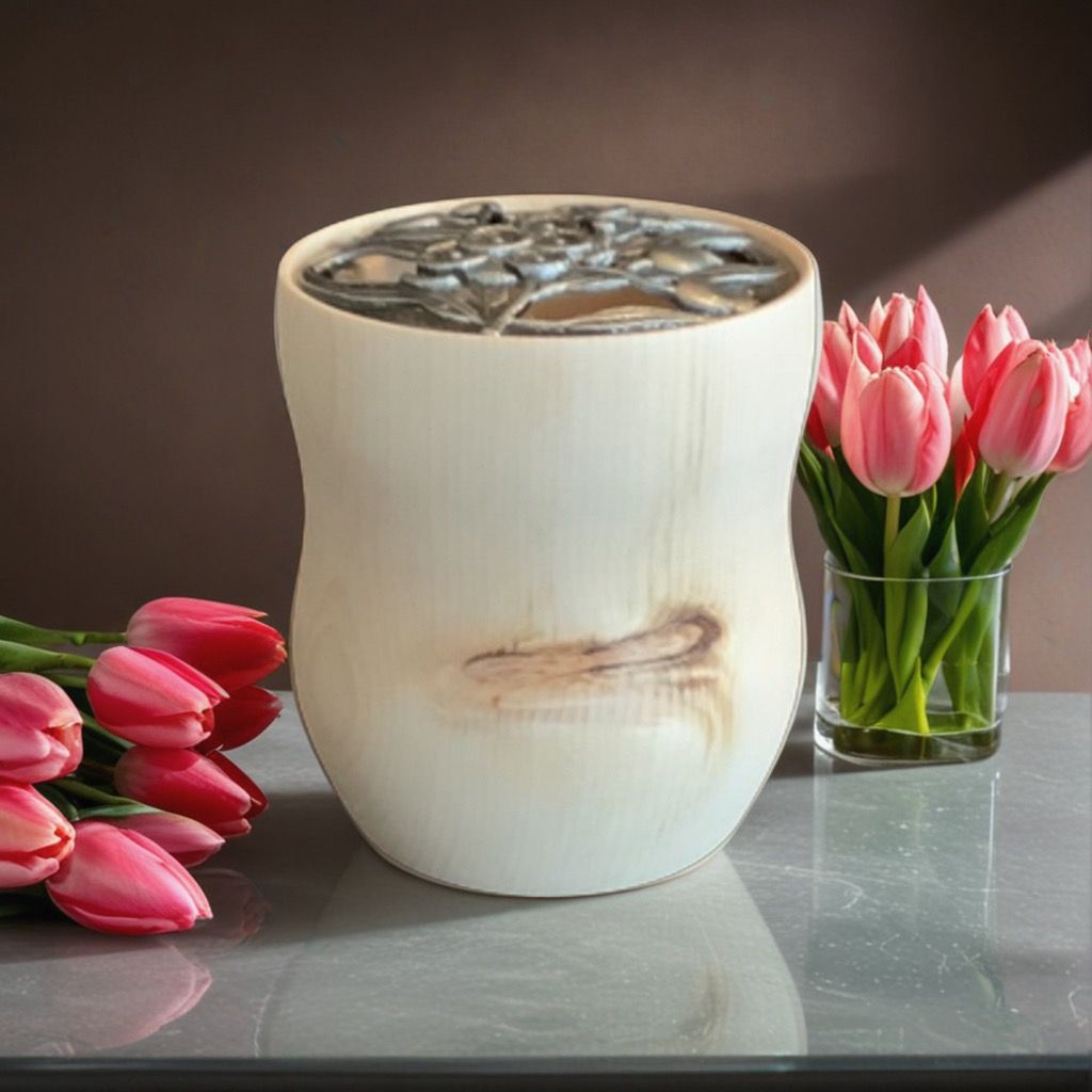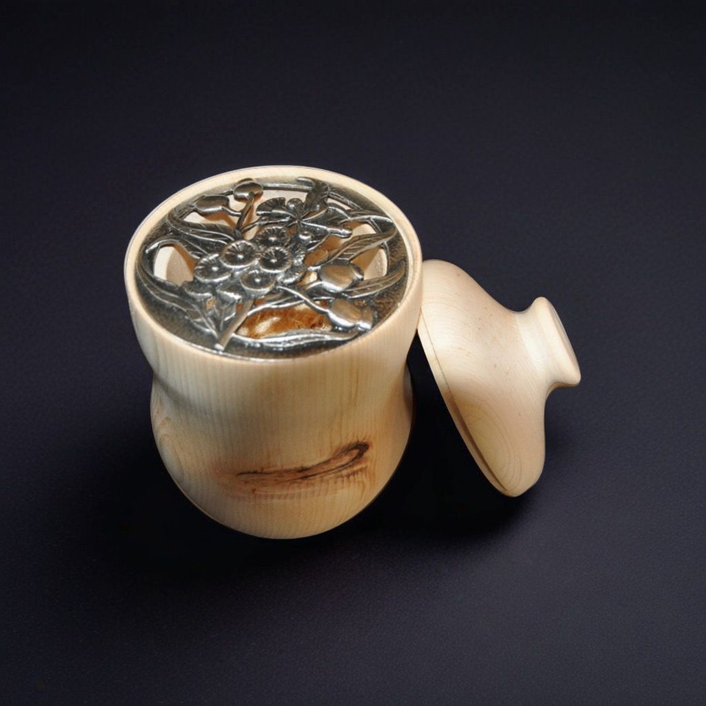 Die Dose wird mit dem Zirbenholzdeckel und dem Potpourri Aufsatz geliefert