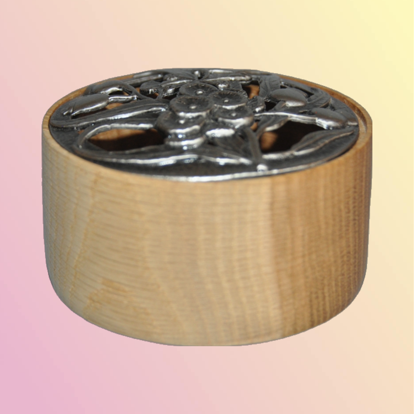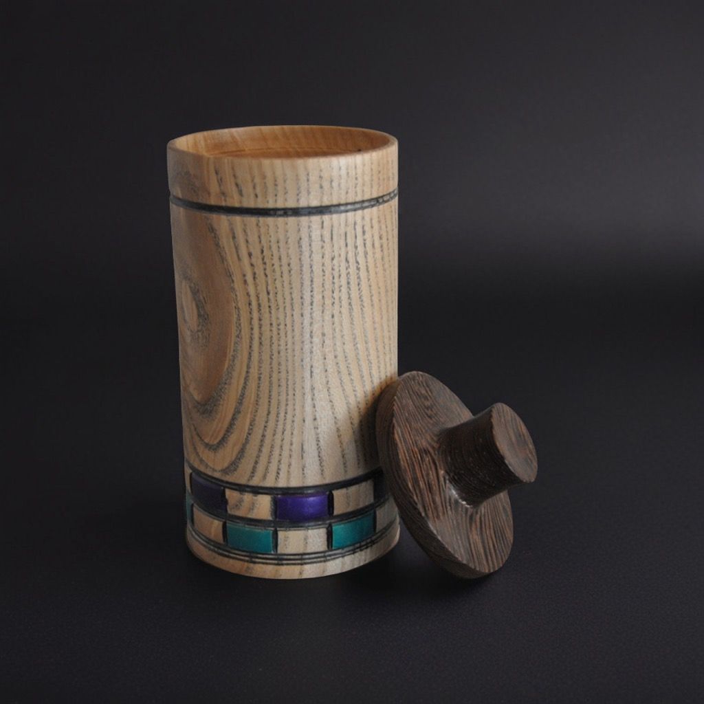 Dose aus Eschenholz mit Deckel aus Zebranoholz