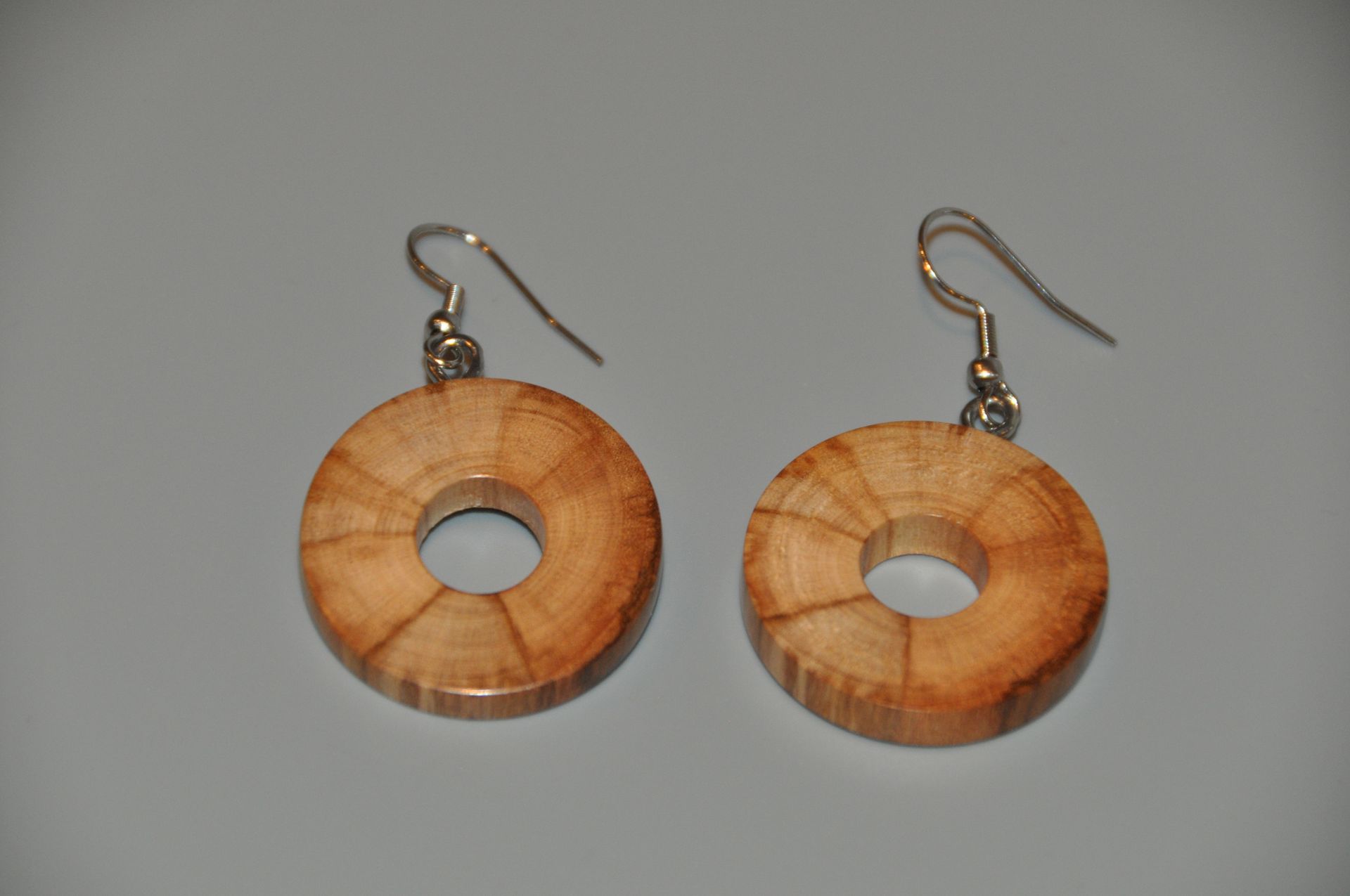 Ohrring aus Olivenholz mit Ebenholz, D 28 mm