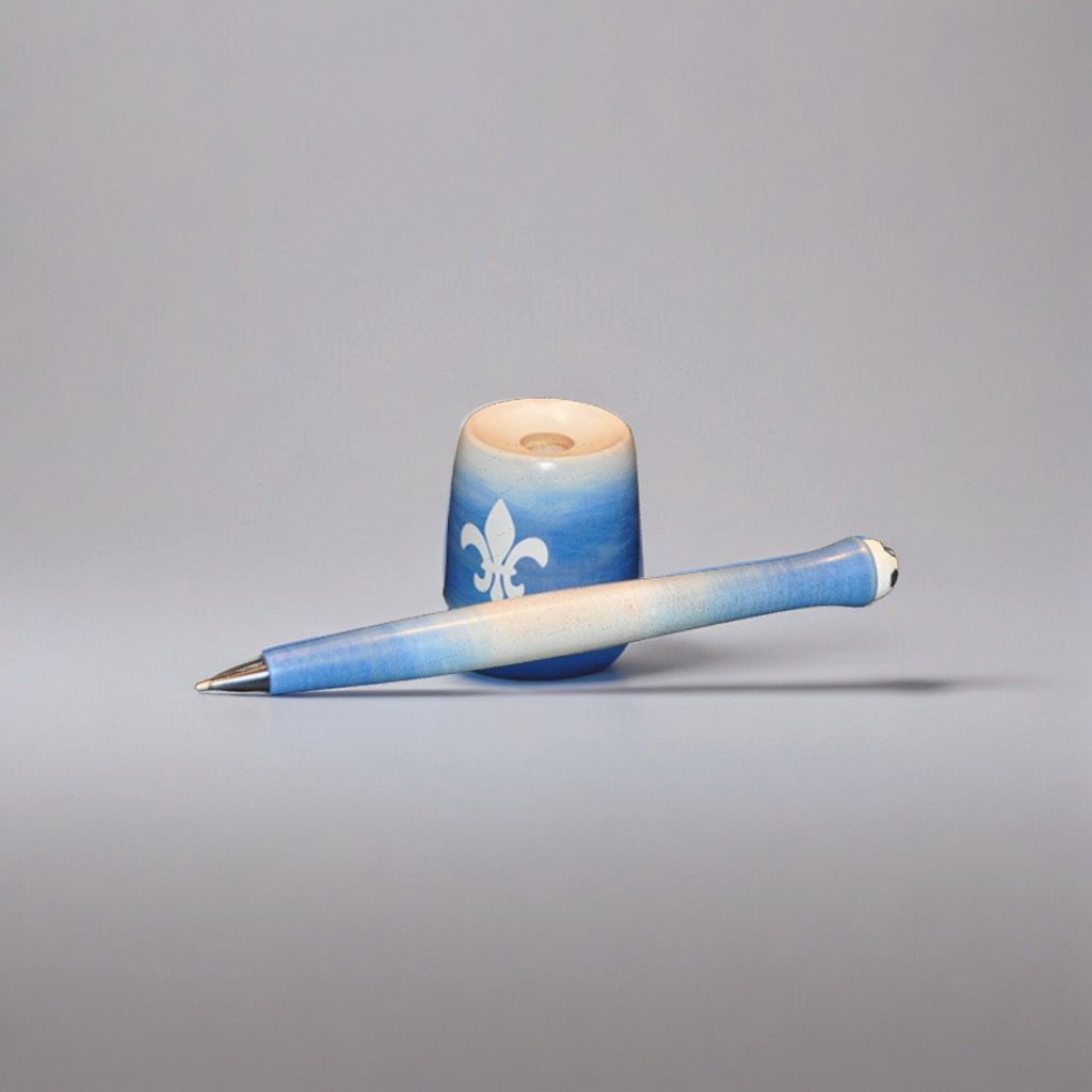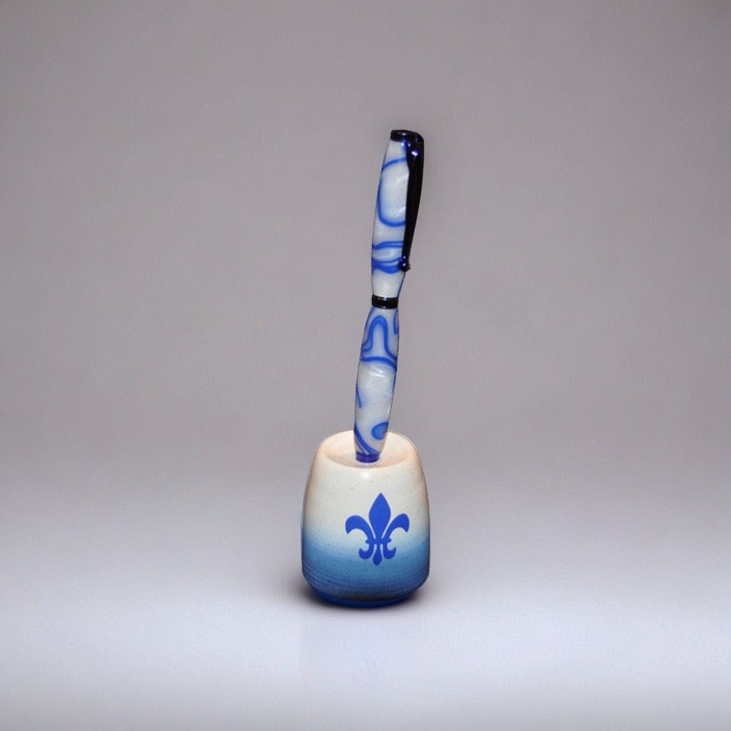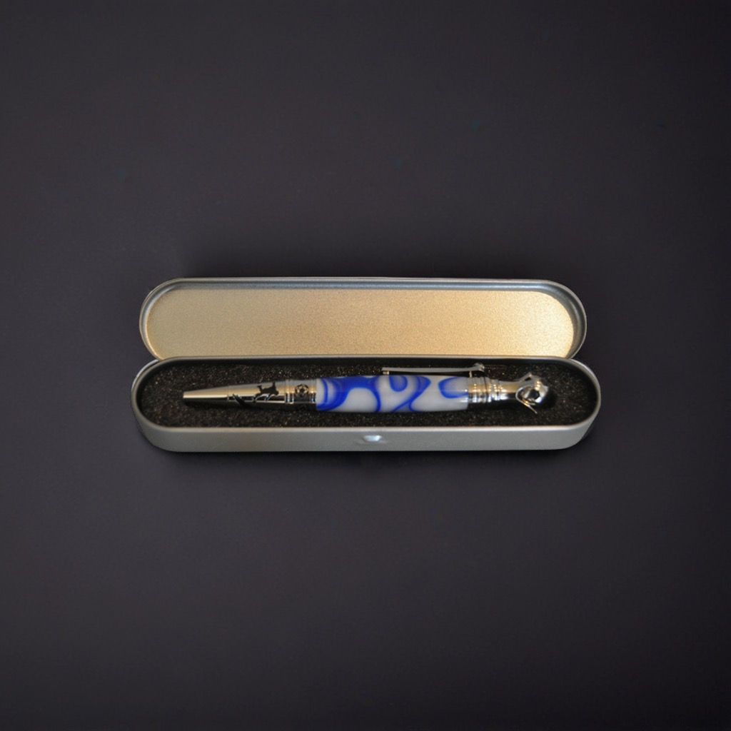 sehr hochwertiger schwerer Drehkugelschreiber Acryl Blau Weiß