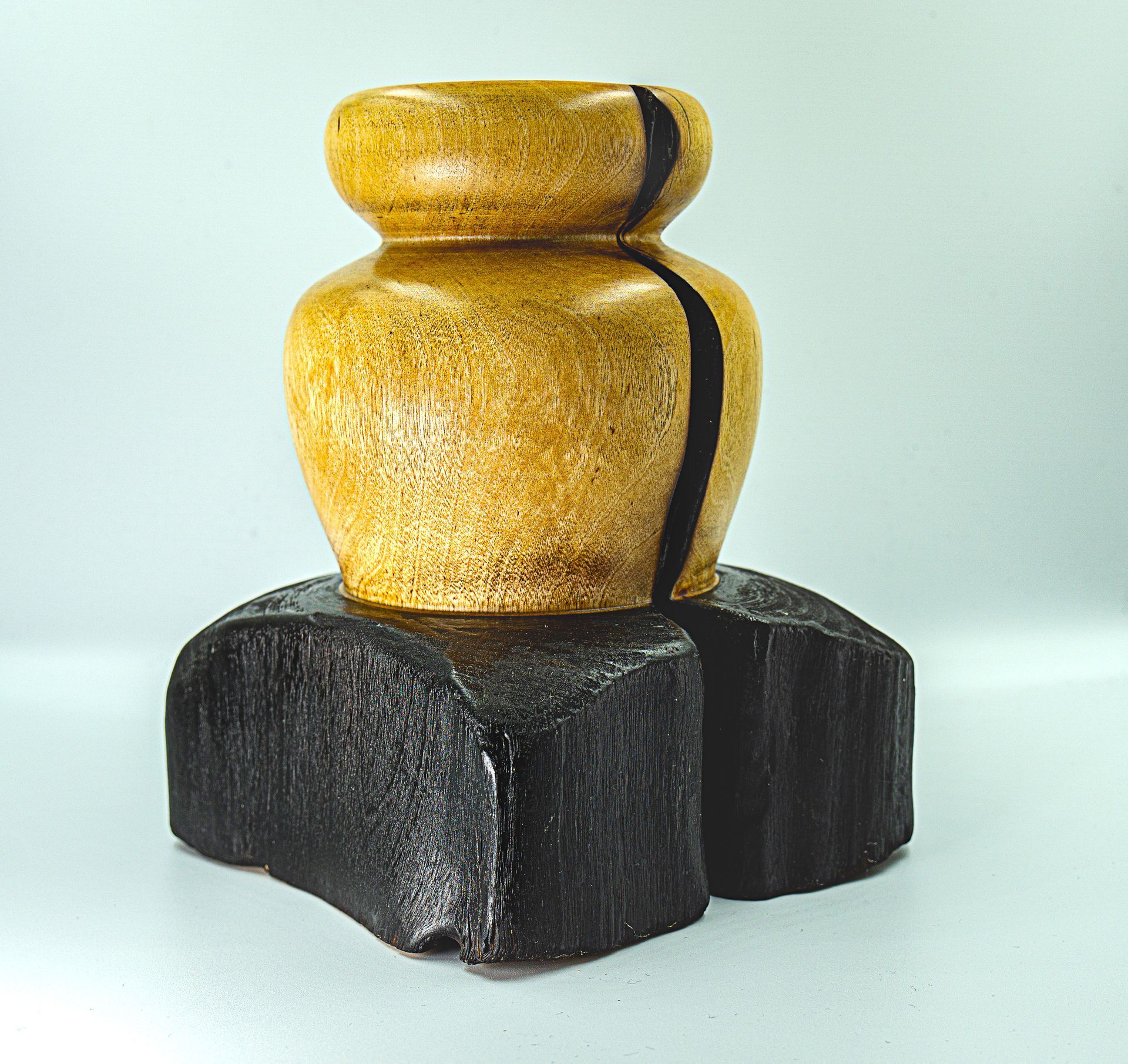 Skulptur aus altem Kiefernbalken, geflämmt und gebeizt