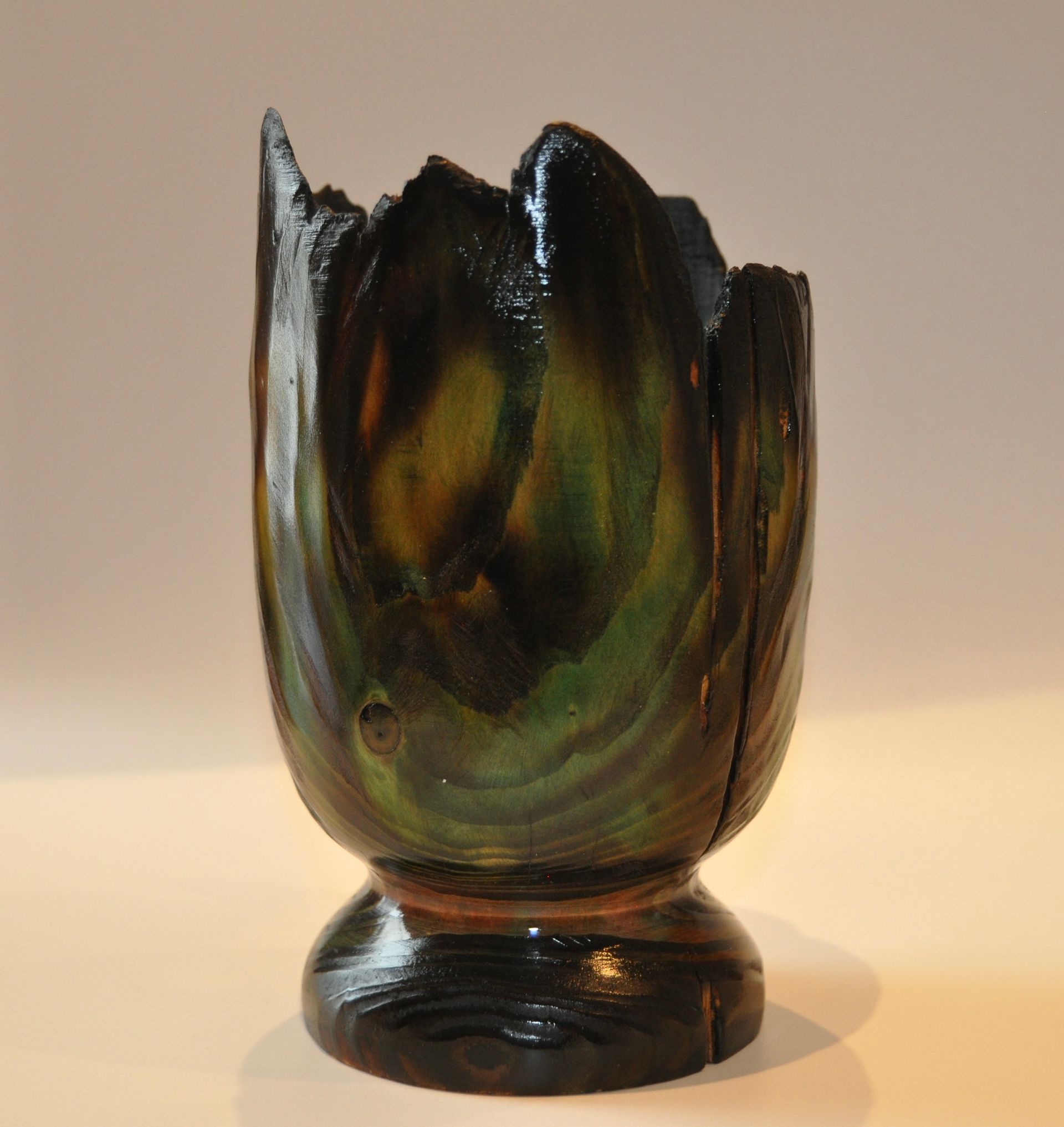 Skulptur aus Lindenholz, farbig gebeizt und gewachst.