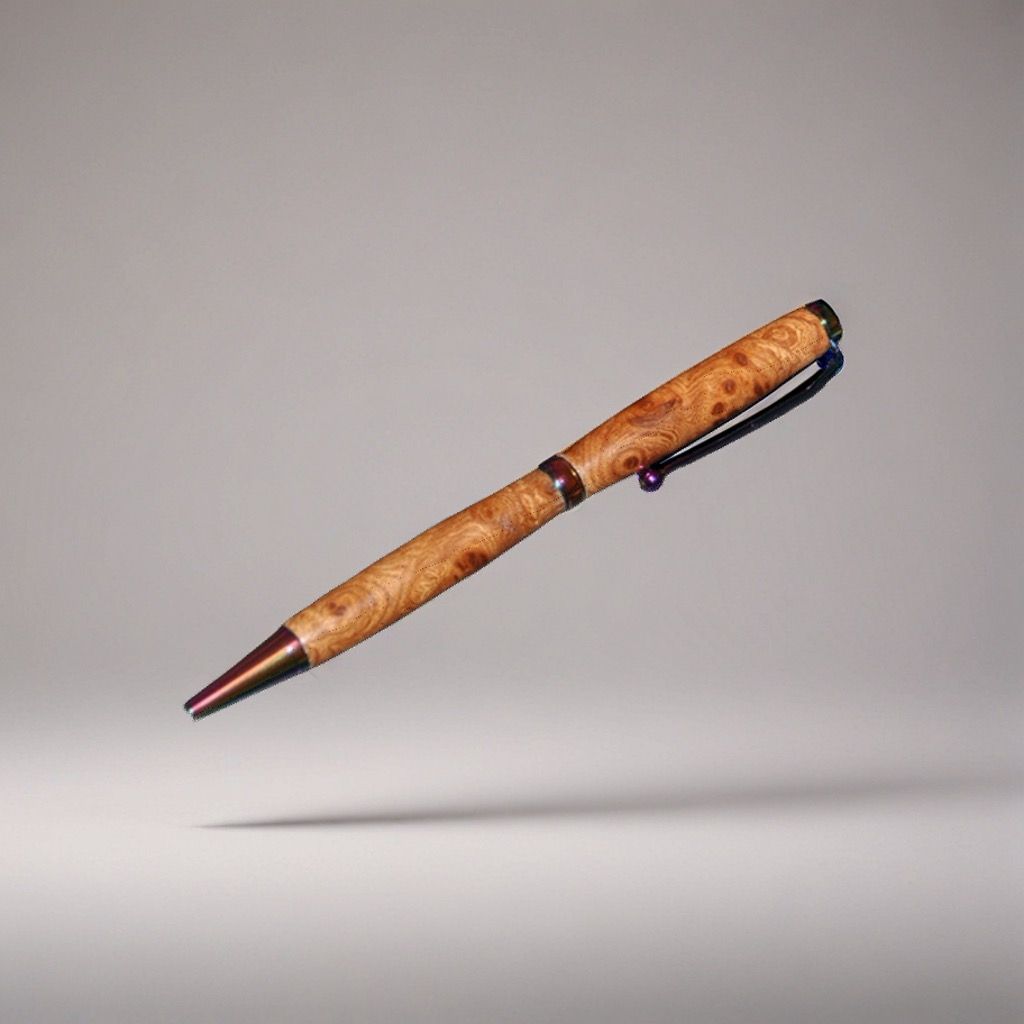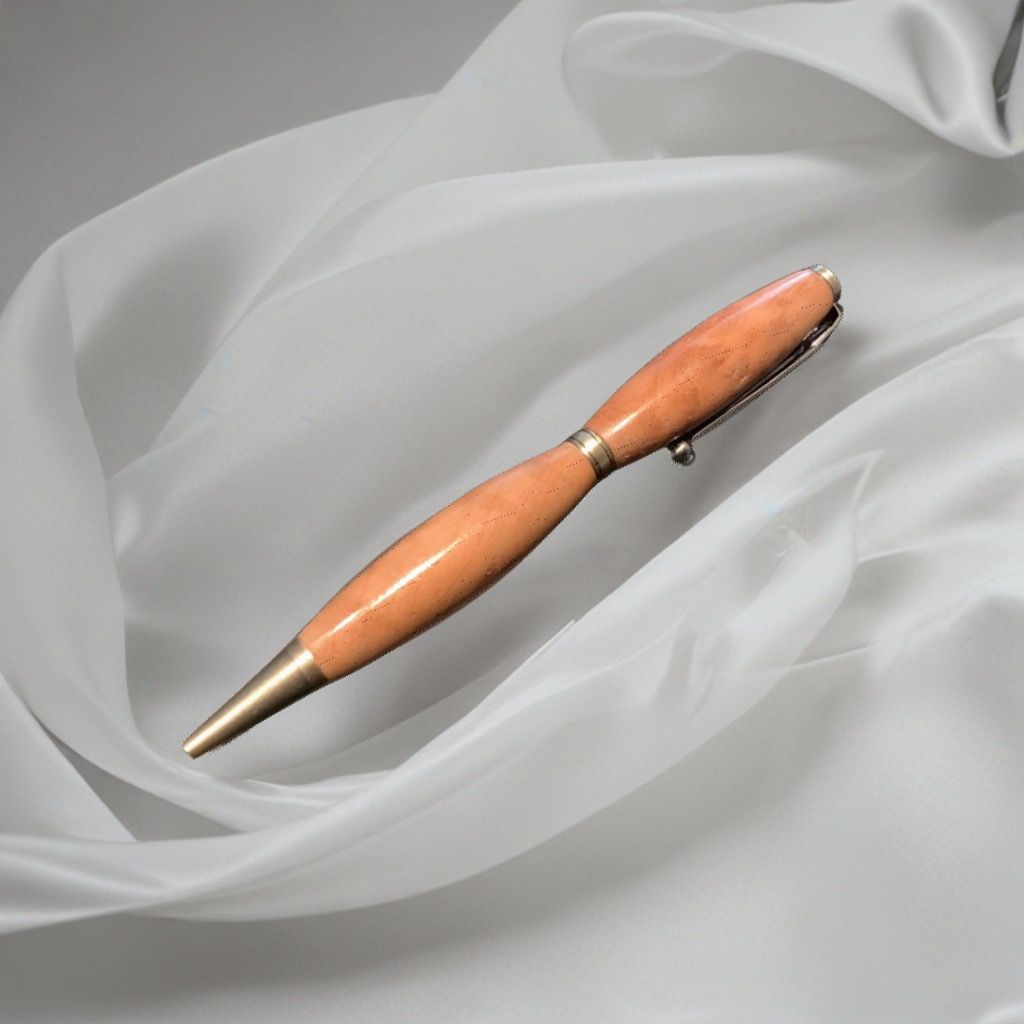 Eleganter leichter Drehkugelschreiber aus Maserpappel gewachst, mit hochwertiger Mechanik und einer Schneider Express 785 Mine Größe M in Blau oder Schwarz