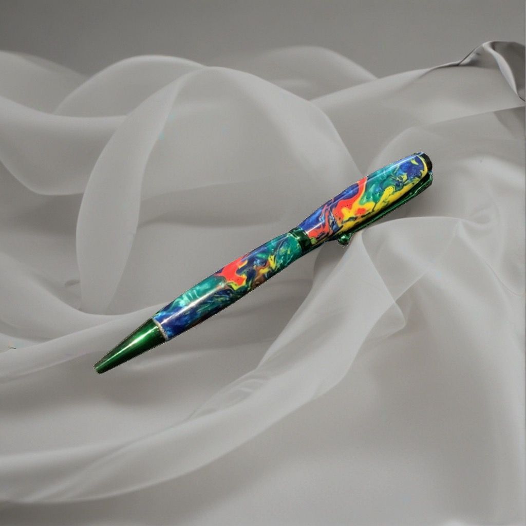 Eleganter leichter Drehkugelschreiber aus Acryl mit hochwertiger Mechanik und einer Schneider Express 785 Mine Größe M in Blau oder Schwarz